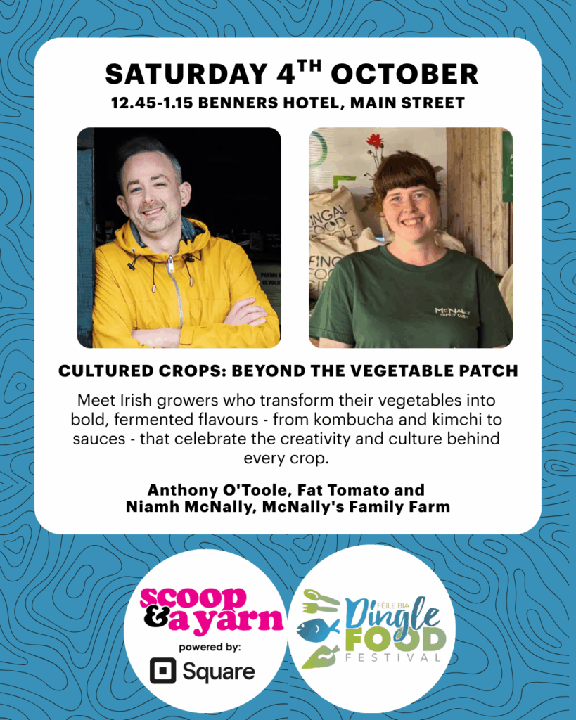 12.45-1.15pm | Cultured crops: beyond the vegetable patch | Meet Irish growers who transform their vegetables into bold, fermented flavours - from kombucha and kimchi to sauces - that celebrate the creativity and culture behind every crop. | Anthony O'Toole, Fat Tomato and Niamh McNally, McNally's Family Farm |